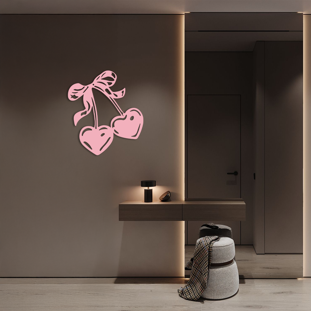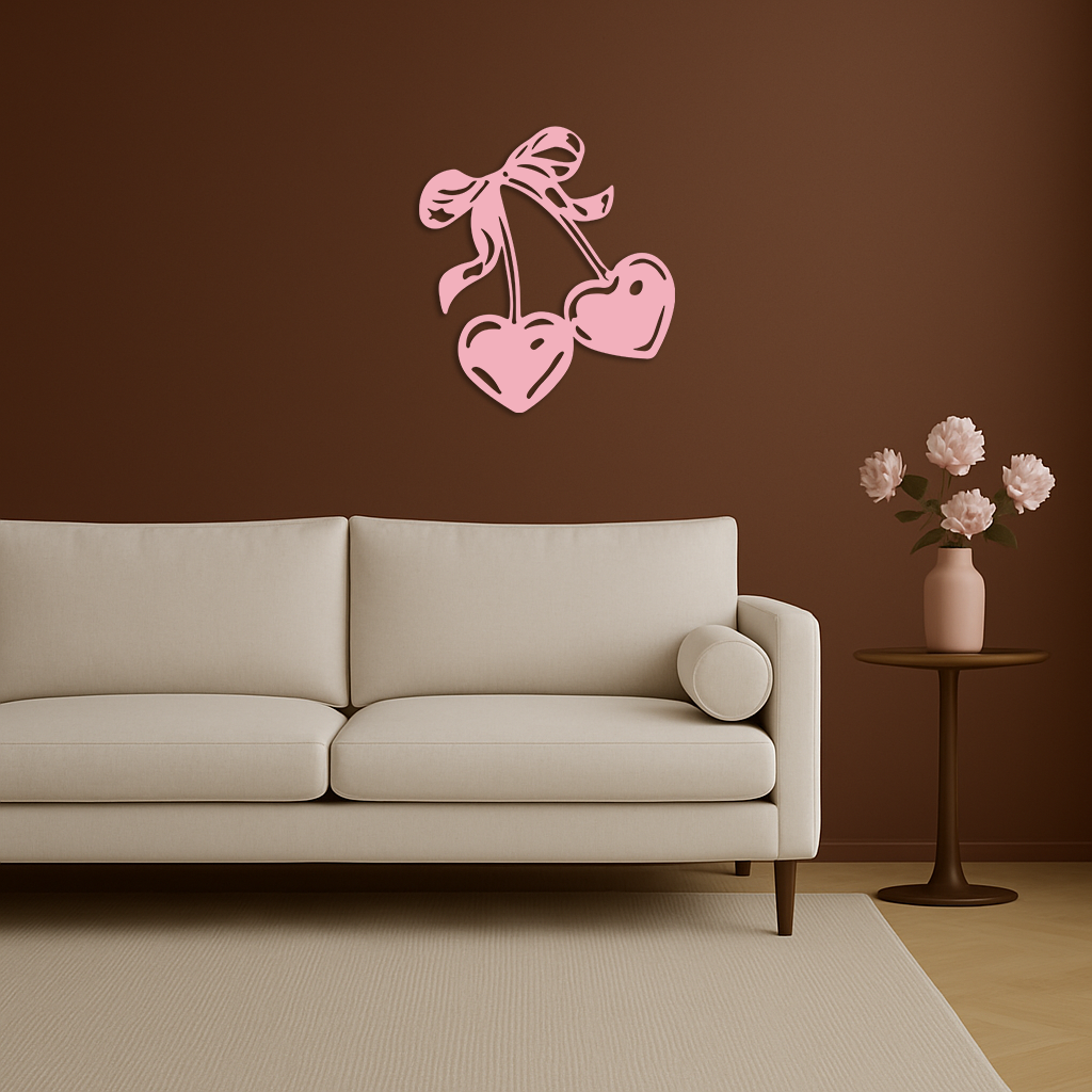 Cherry Heart Silhouette Metal Wall Art โ Romantic Bow Design - KAFGP046