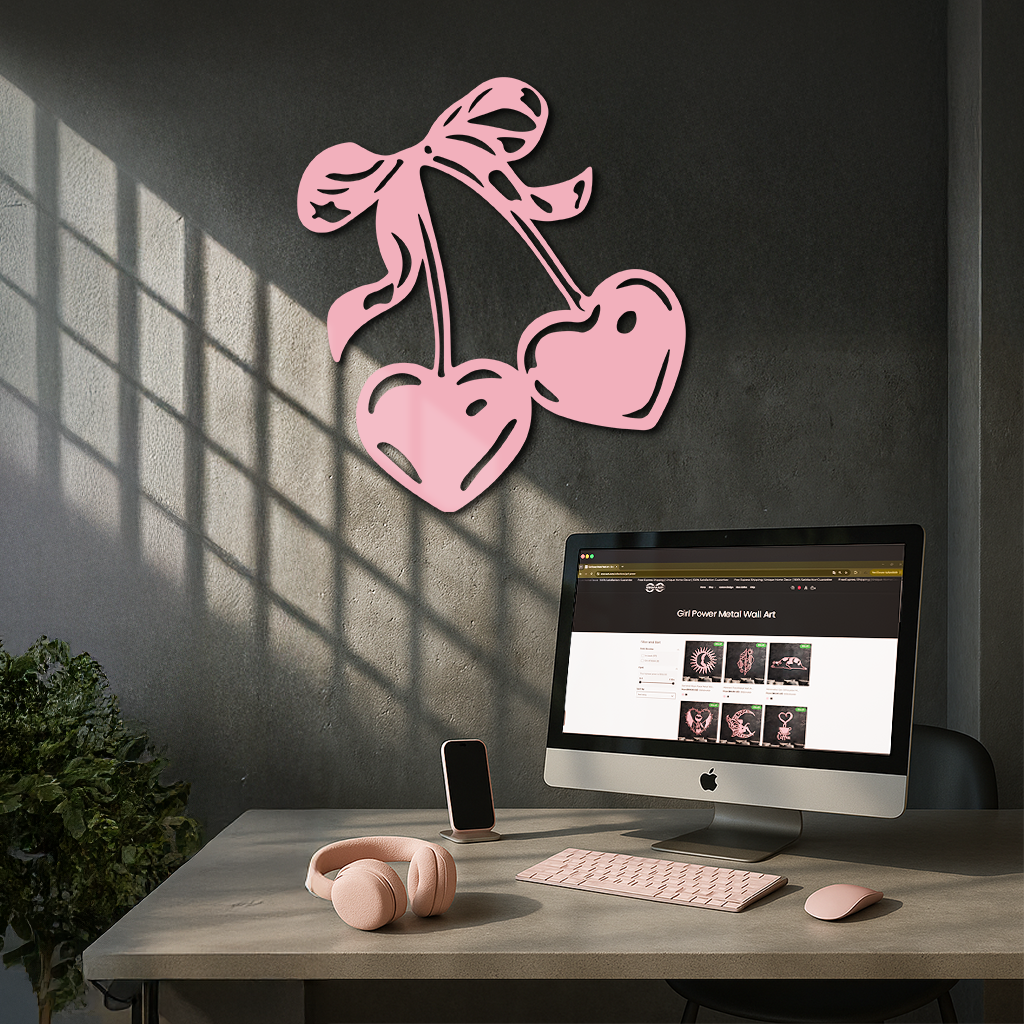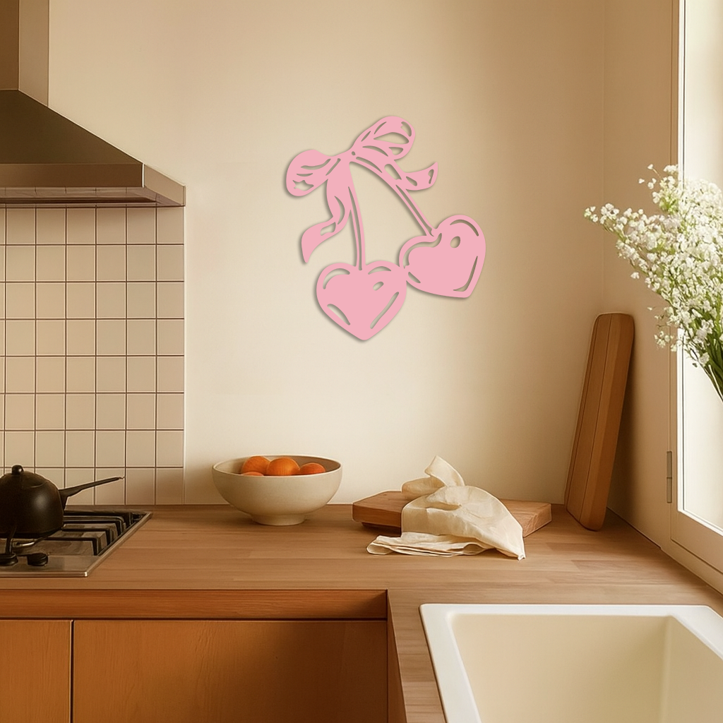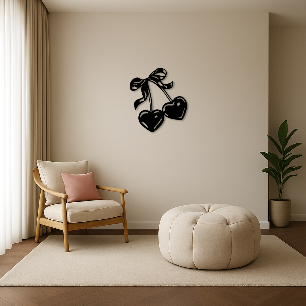 This Cherry Heart Silhouette Metal Wall Art is a playful yet elegant addition to any modern home. Featuring two heart-shaped cherries tied with a bow, this design symbolizes sweetness, love, and charm. Crafted from premium quality metal with a sleek black powder-coated finish, itโs both durable and stylish. Perfect for bedrooms, living rooms, or as a unique gift for someone special.