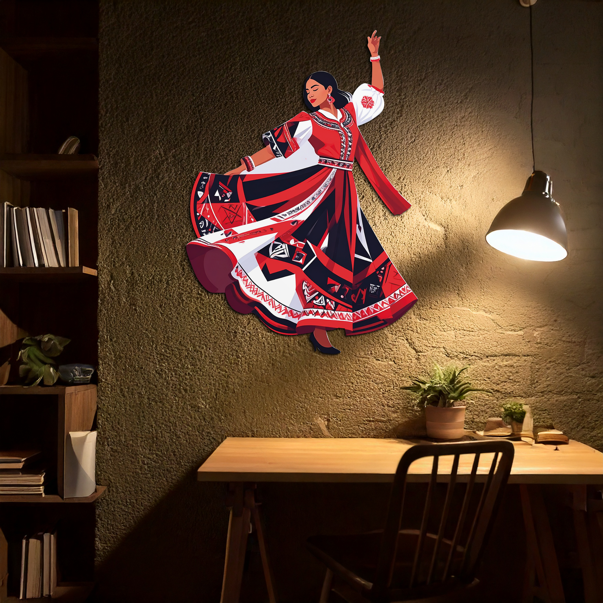 This Dancing Woman Metal Wall Art brings bold energy and cultural elegance to any wall. Featuring a striking traditional dress in vibrant red, black, and white, this piece is UV-printed on ultra-durable ST-37 steel to keep every spin, twirl, and pattern crisp for years.