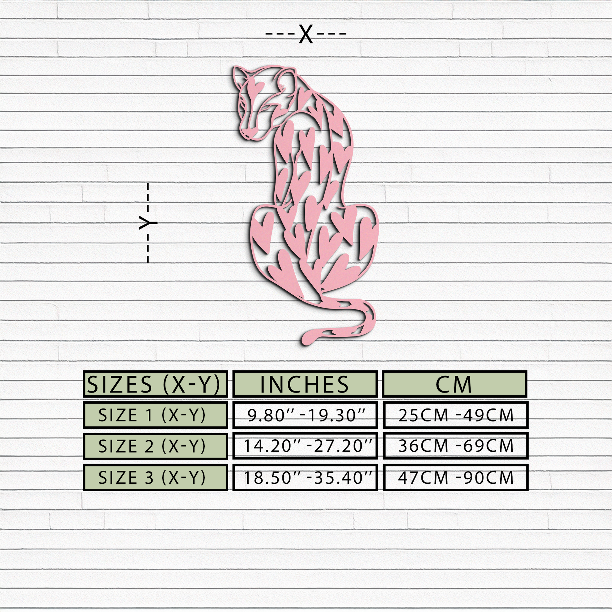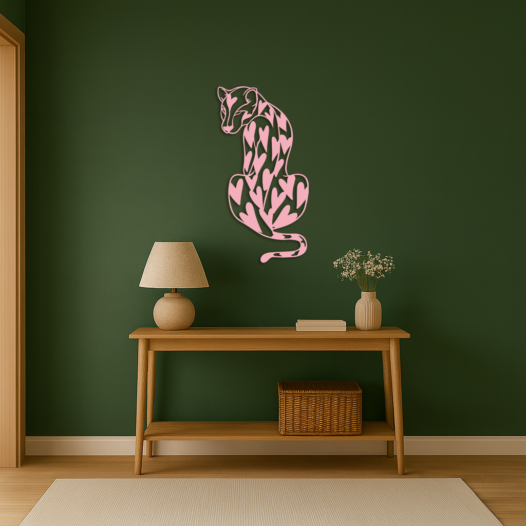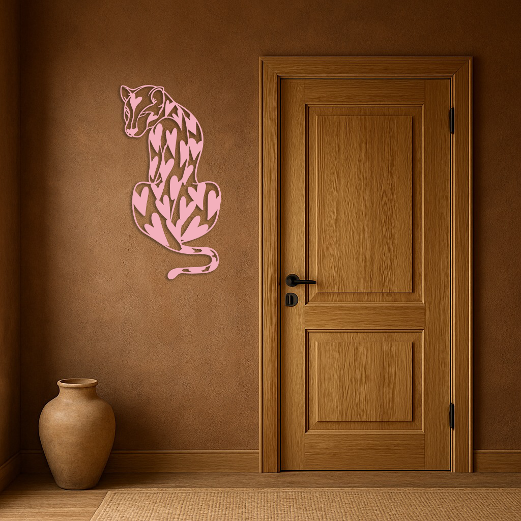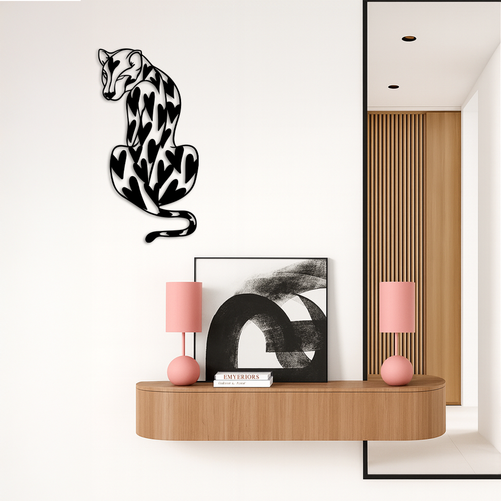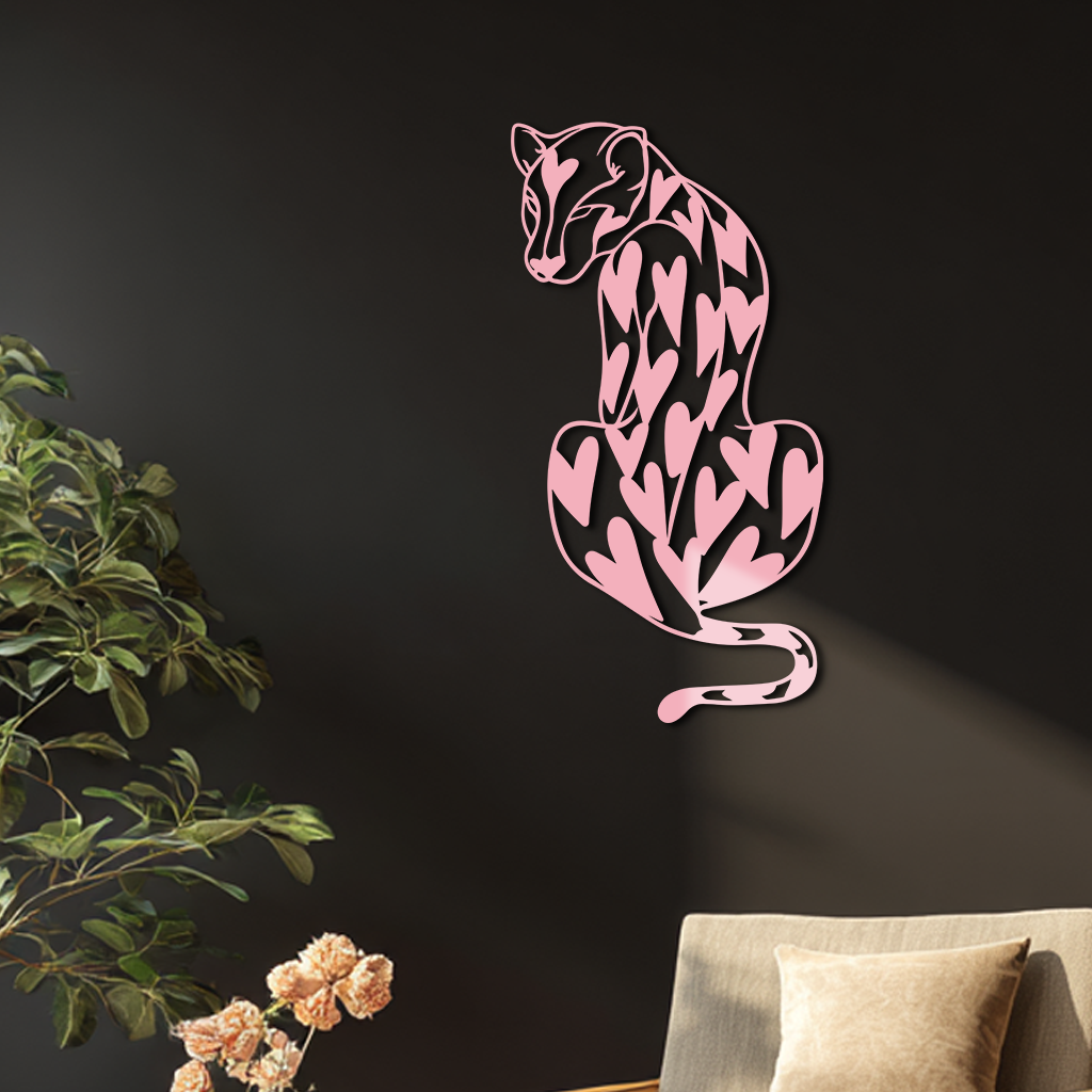 Add a unique and modern vibe to your home with the Heart Pattern Leopard Silhouette Metal Wall Art. This design features an elegant leopard figure decorated with heart-shaped patterns, symbolizing both strength and love. Crafted from premium quality metal and finished with a durable powder coating, this piece blends modern art with wild nature aesthetics. Perfect for living rooms, bedrooms, or creative spaces.
