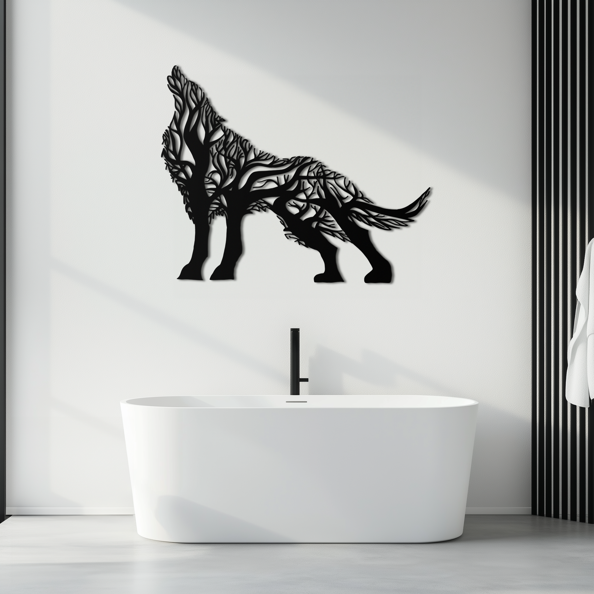 Elevate your space with this stunning Tree Wolf Metal Wall Art, a perfect fusion of nature and wildlife aesthetics. This breathtaking design features a howling wolf seamlessly blended with intricate tree branches, symbolizing strength, freedom, and the connection between the wild and nature. Ideal for home decor, offices, cabins, and outdoor settings.