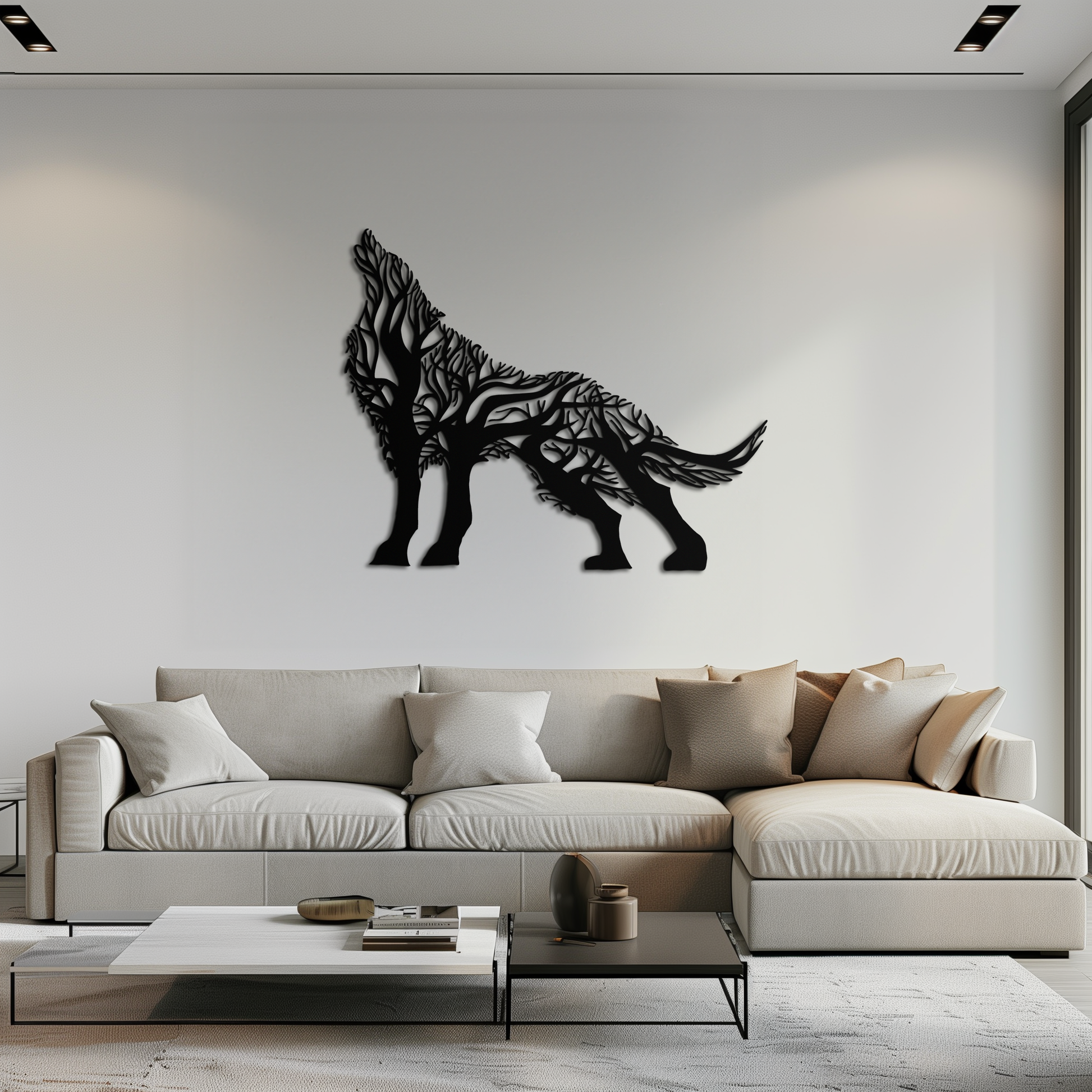 Tree Wolf Metal Wall Art - Nature-Inspired Wildlife Decor- KAF263